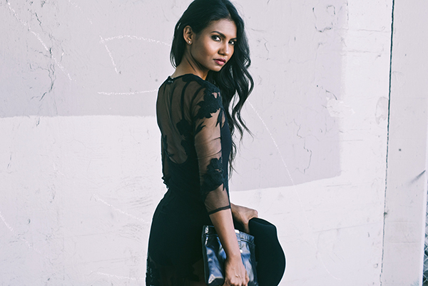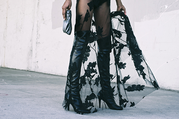 Outfit Details: For Love & Lemons Black Orchid Dress, Stella McCartney Thigh High Boots