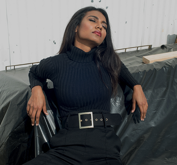 Outfit Details: For Love & Lemons Knit Bodysuit, Nasty Gal High Waisted Belted Trousers