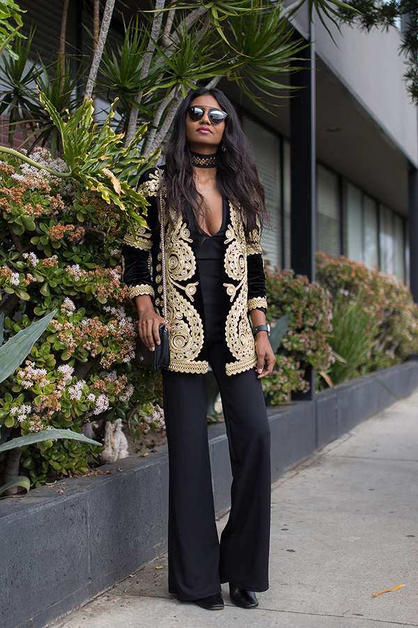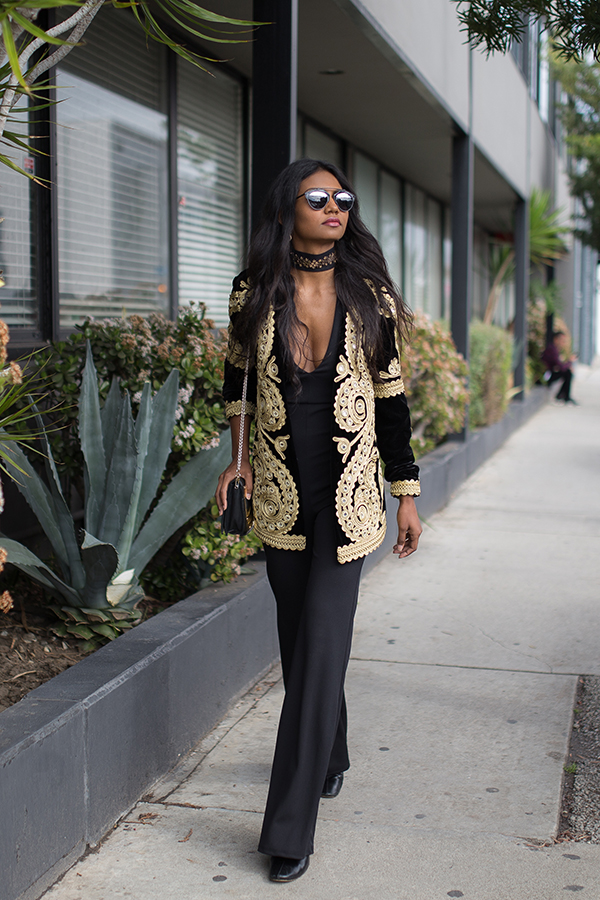 Outfit Details: For Love & Lemons Paris Blazer, Black Jumpsuit