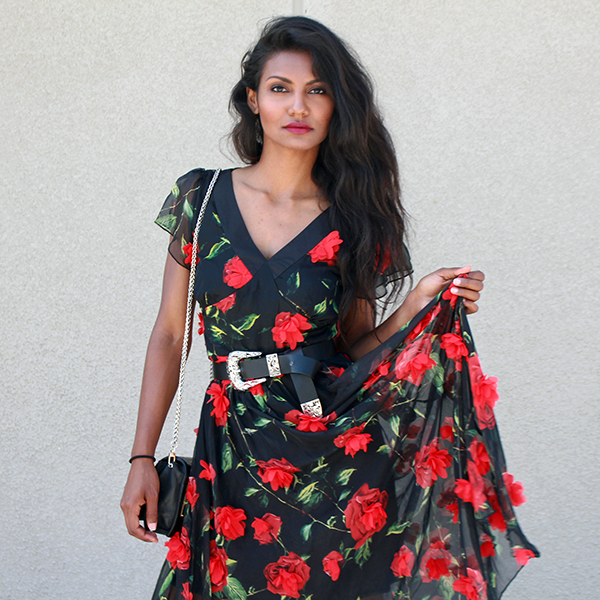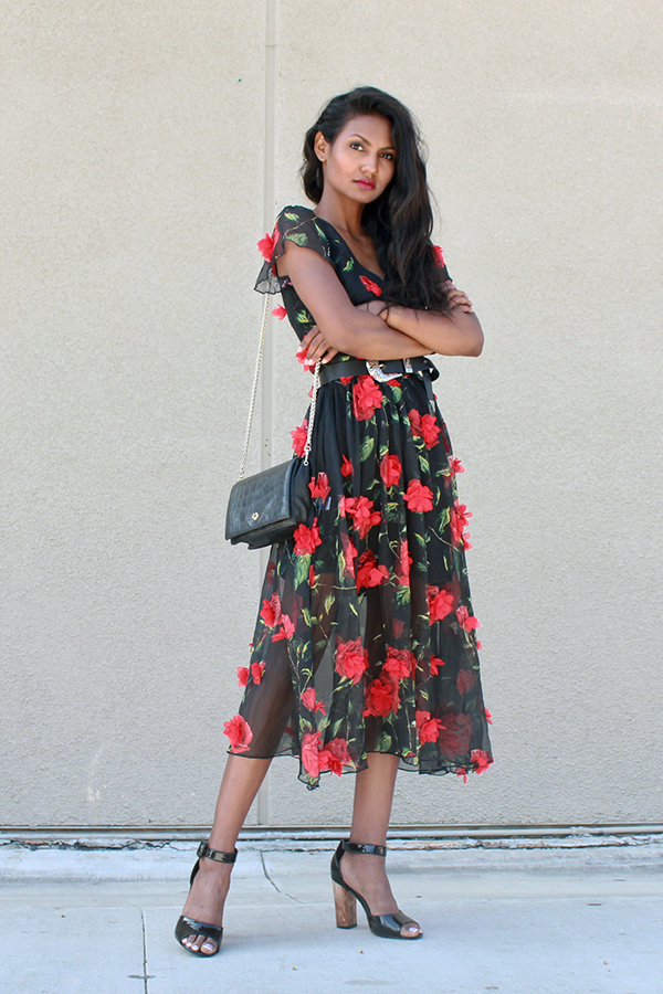 Rose Embellished Midi Dress