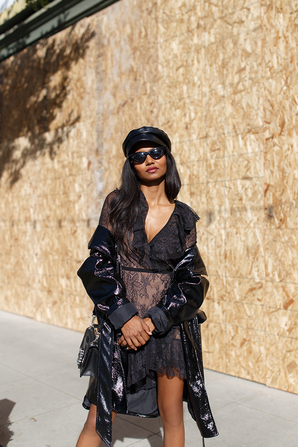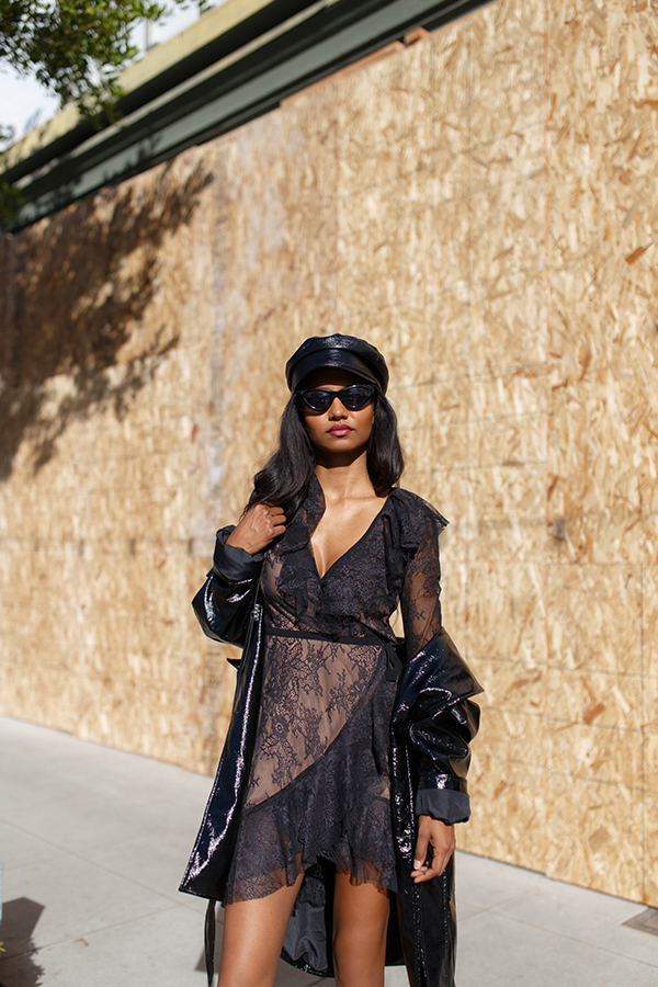Outfit Details: Who What Wear Vinyl Coat, ASOS Baker Boy Hat, For Love & Lemons Daphne Lace Dress ![]() Post Script. lookbook | tumblr | chictopia | bloglovin | facebook | instagram |